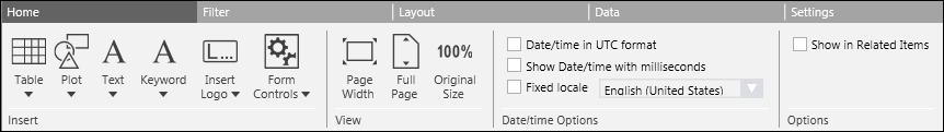 The Options group box provides additional options available in the Home tab: