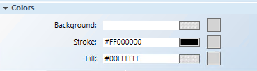 1. Select the button (for example, rectangle) element on the canvas, and from the Property View, expand the Colors property group. The button element must have a color associated with the Background or Fill fields, so that it has a selectable area. If you leave both properties blank, the button element cannot be selected. Format the button element using the following properties.