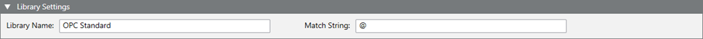 The Library Settings expander allows defining the string to match for the rule to be applied. The matching string will be mapped on the name of the discovered OPC server.