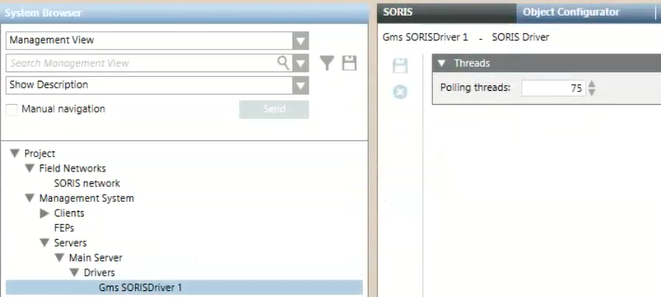 - Select Project > Management System > Servers > Main Server > Drivers > [SORIS driver].
