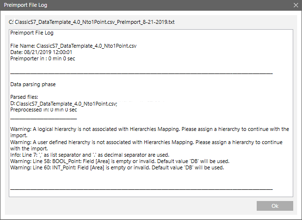 Preimport File Log