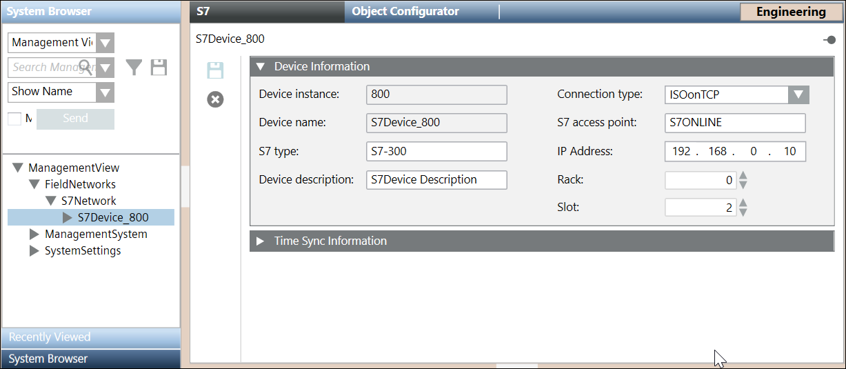 The S7 Device Information Expander provides information on the imported S7 device.