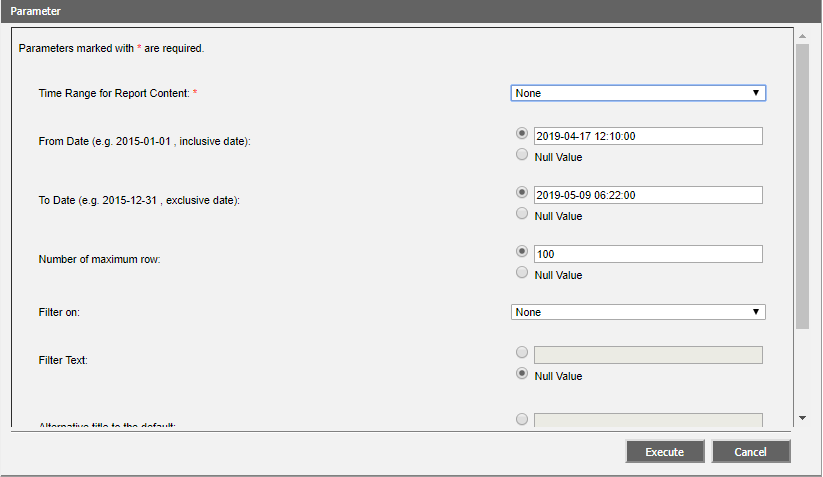 In the Number of maximum rows field, the number of report lines to be created or select option No value (= all lines).