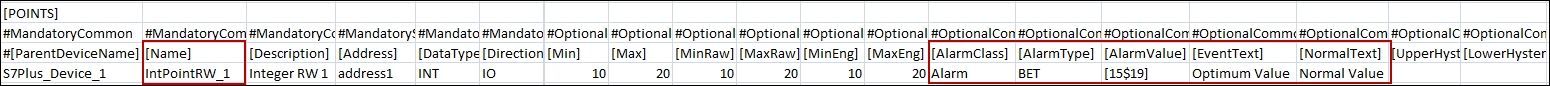 - If all the classification attributes (Discipline, Subdiscipline, Type, Subtype, Functions) are defined in the CSV file, then on importing the CSV file, the proper classification attributes are assigned to the S7 Plus Devices and Points.