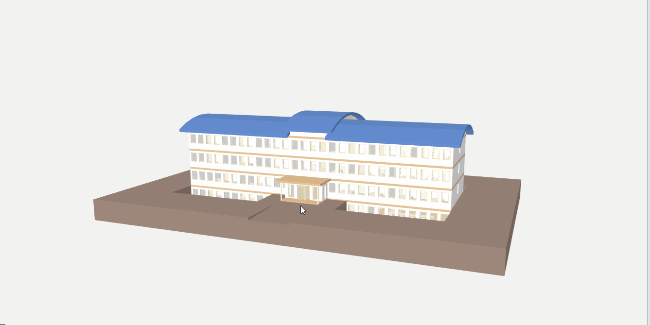 - At a perspective near or in the building, the camera rotates around the current location for the camera.