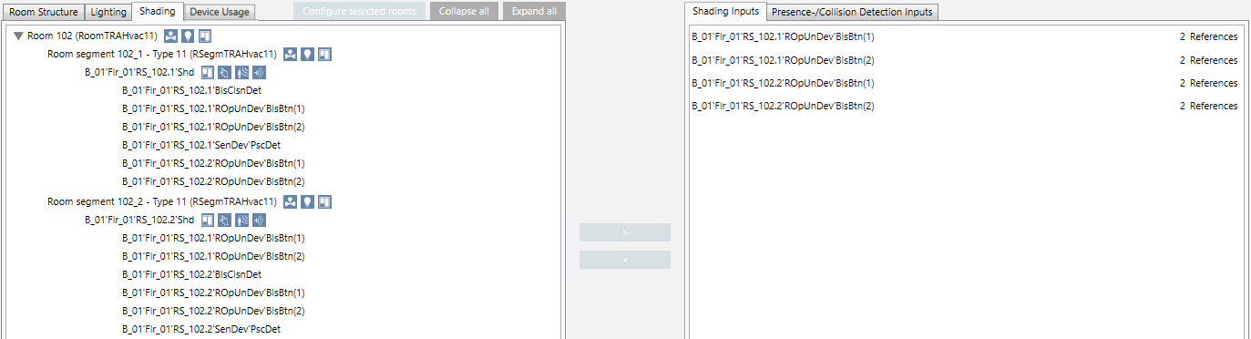 - Repeat steps 5 to 8 for the area RS_102.2’Shd. Assign inputs RS_101.2‘ROpUnDev‘BlsBtn(1) and RS_101.2‘ROpUnDev‘BlsBtn(2).