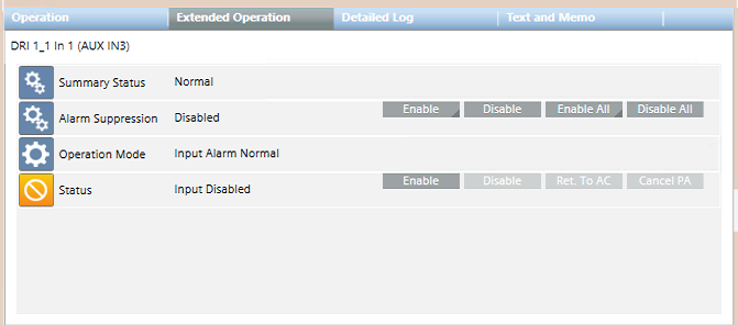 NOTE: The above commands will not have an effect if the input is configured in SiPass with Operation Mode = InputDisabled.