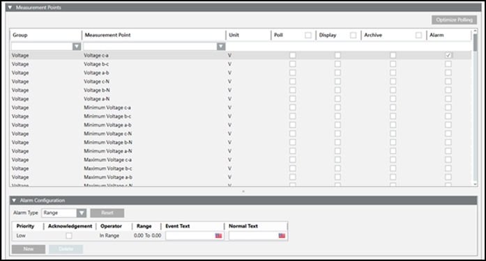 - Measurement Point: It allows you to select the measurement points to be configured for the corresponding device under the Device column.