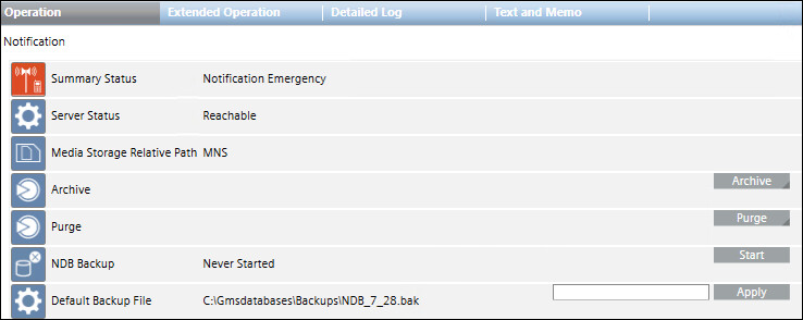 - The system begins backing up the NDB database. The default backup location is [installation drive:]\GMSBackups. Although the Last Execution Status indicates