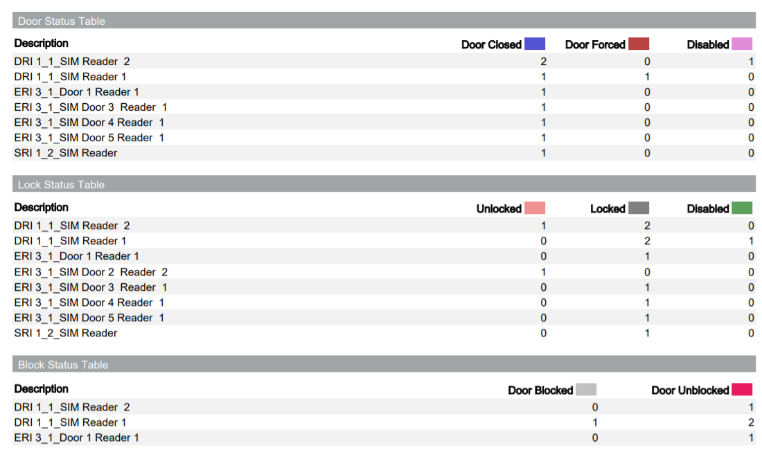 The advanced report provides a larger set of door events - The detailed status table for each type of event.