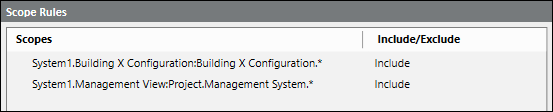 - Drag the views and objects you want to include in the Scope Rules—for example, a Building X view and a view from the Field Networks node in Management View.
