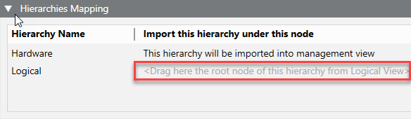 1. Drag the Logical view root node to the Logical row, into the Import this hierarchy under this node column.