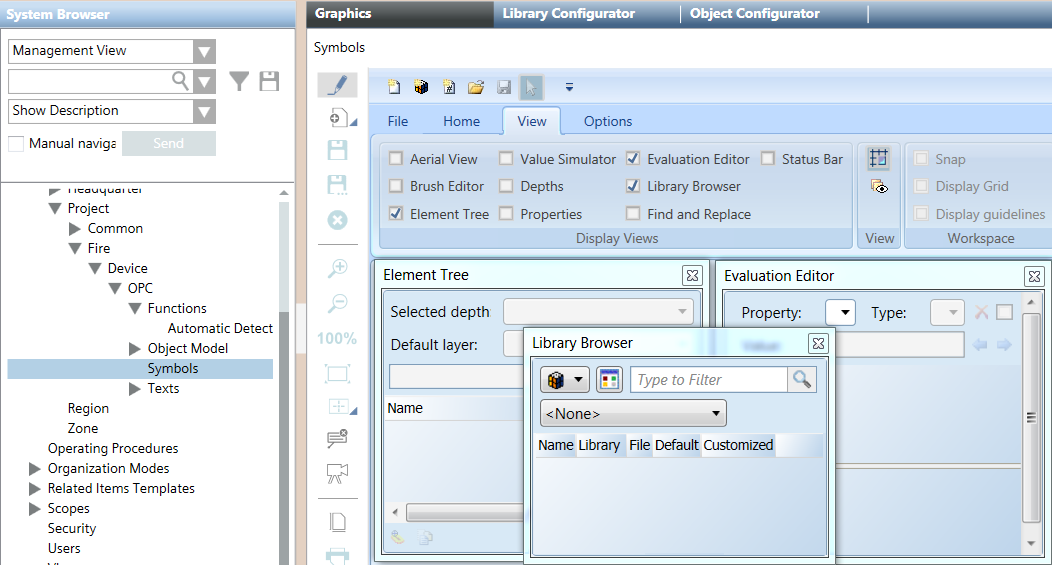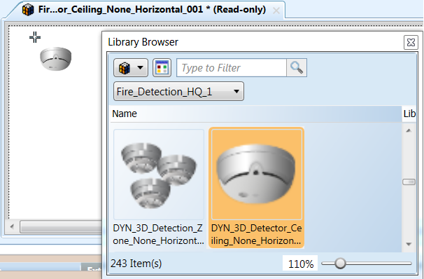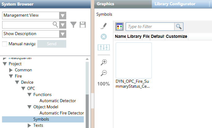 1. In the Library Browser view, proceed as follows (see Figure Selection of a Fire Symbol):