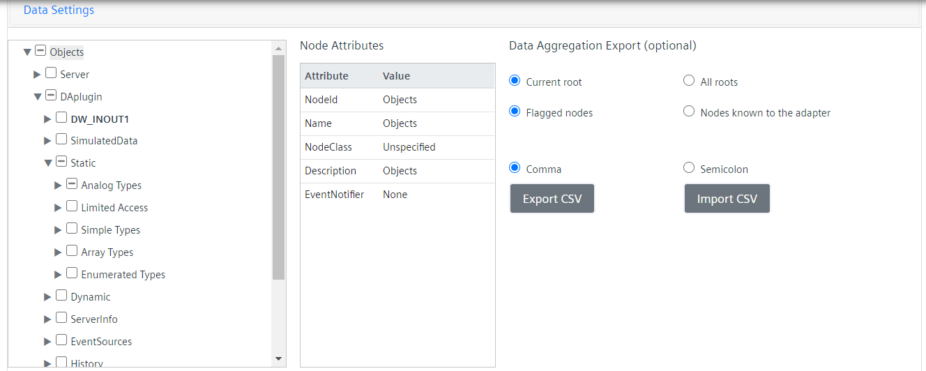 In the OPC UA Client Configuration section, click Data Settings.