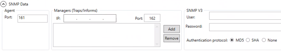 - In the Managers (Traps/Informs) panel, specify the list of managers that will notify the SNMP agent: