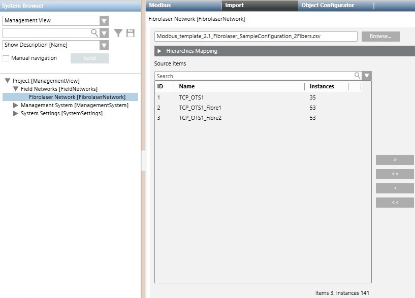• When the import completes, the imported configuration data structures are added to System Browser.