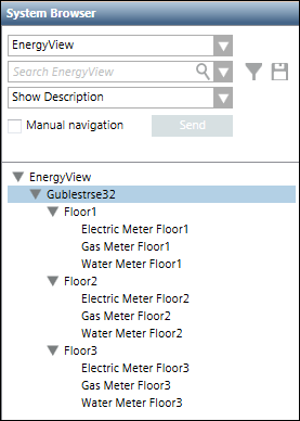 - Meters distributed on the basis of media units such as water, power, gas or oil. In this case, you can create a hierarchy of the various media units and then associate meters to each media unit. For example, you can create a view and add electricity, gas, and water media units to this view. To this structure, you can then assign the meters for monitoring electricity, gas, and water consumption respectively.