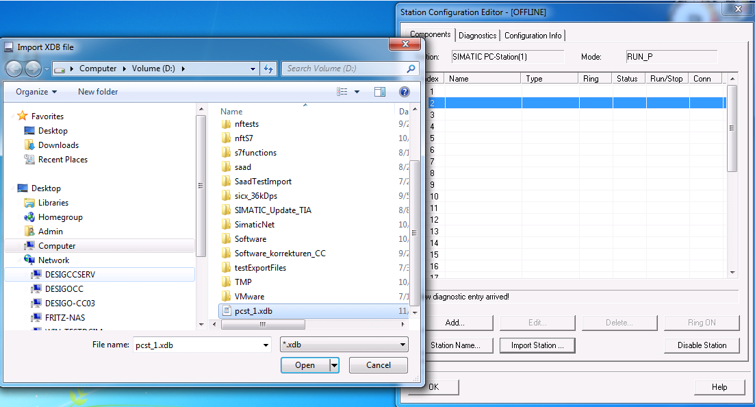 The HW Config and the fault-tolerant connections are imported into the PC station. NOTE: The HW-Config and the fault-tolerant connections can also be loaded on the SIMATIC PC-Station without the configuration file. But it is recommended to import the configuration file the first time. However, the HW-Config and the fault-tolerant connection can also be loaded with the STEP7 Manager in SIMATIC PC-Station (see load HW-Config below).