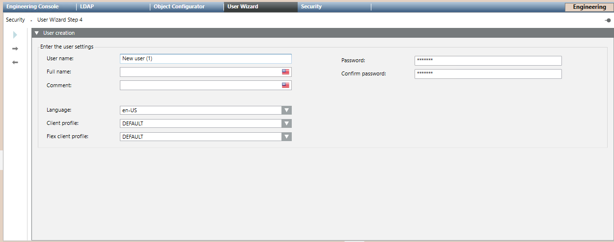 1. In the Full name field, enter an expanded user description. This text displays as the user name in the Summary bar.