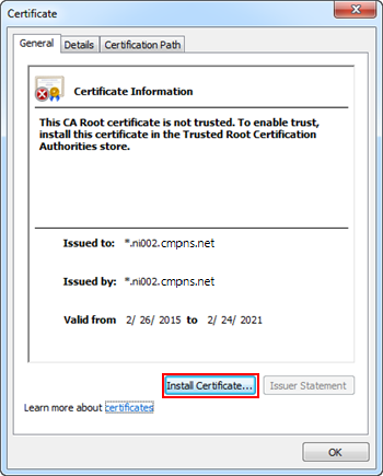 NOTE: If host certificates created with SMC are used for signing the Web Application and the browser is configured to check the publisher's certificate revocation, the Security Warning message may display, even after installing the certificate. In this case, you can either add the website to the Trusted Sites zone to resolve the issue or ignore the warning and click Install (for Windows App client).