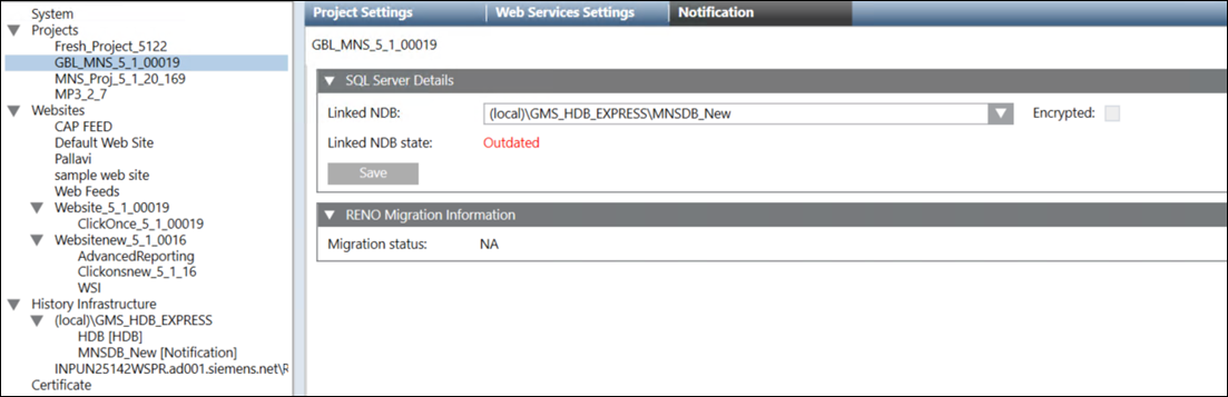 NOTE1: The NDB status is displayed in Linked NDB state field. The NDB states are same as the HDB states. For more information, refer to the Server Project Information Expander section in the Project Modification Settings topic.