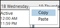 Right-click the name of the day for which you want to copy the schedule entries and click Copy. For example, if you want to copy the schedule entries of Wednesday, then right-click the name of the day and click Copy.