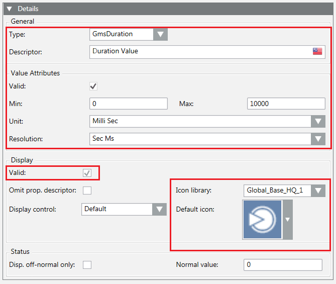 Object containing the valid range values. For details, see Table GmsDuration Properties, below. If the object is empty (“Attributes”: { }), the range values are reset, while the range is UInt32.MinValue ÷ UInt32.MaxValue.