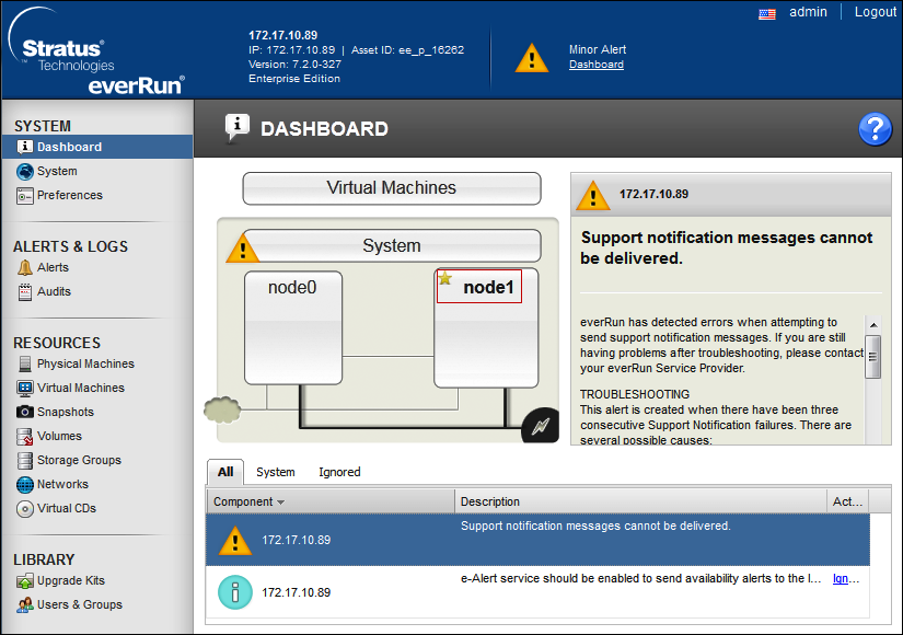 Client does not lose the remote desktop connection to the protected Virtual Machine and all the Notification features are still accessible. The star icon is shifted to node1 making node1 as the primary physical machine.