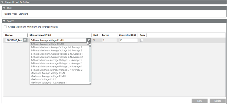 a. Select the required measurement point from the drop-down list under the Measurement Point column.