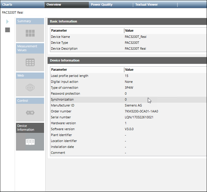 Overview Tab (Power Devices and PQ Devices)