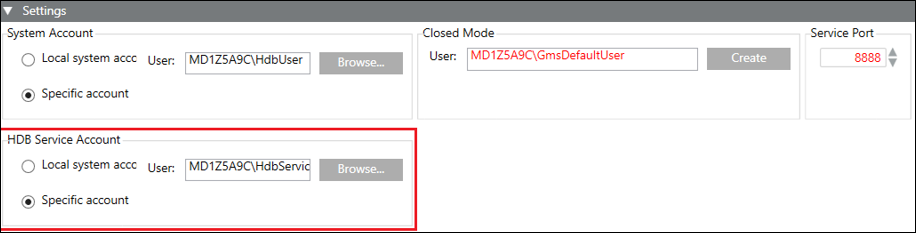 Use this procedure to change the default value for the HDB Service Account user. The HDB Service Account user is a user that internally runs the Siemens GMS HDB Service and is the HDB service user. It is recommended to configure the HDB Service Account user before creating the HDB. Once created it is set for all the HDBs available in SMC.