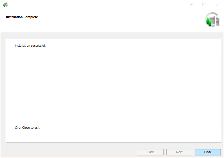 When the installation program is complete, the Installation Complete dialog box displays. Click Close to complete the installation.
