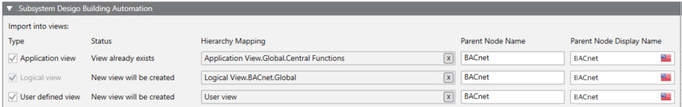 If you have two or more networks, you can enter the same information as for network 1 in columns Superposed object name and Superposed object display name. This imports the project data to the same folder structure of the System Browser. The entry fields must be completed.