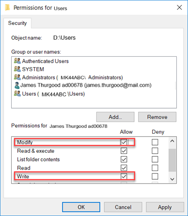 - Select the Modify and Write permissions for the project’s Pmon user.
