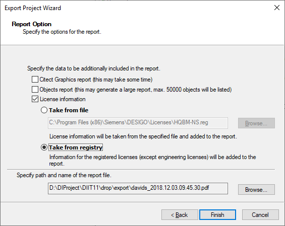 - Enter the path and name of the report file: