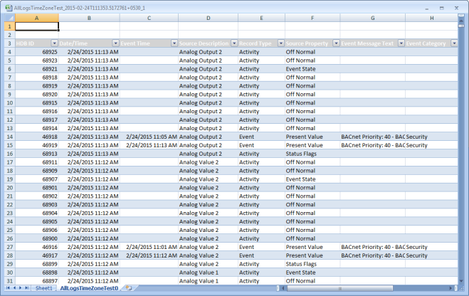 In case of an Event Details table the generated Excel document does not have any combo boxes as the data displays parent and child records.
