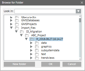 1. Select the Desigo Data Migration tab and open the Select Folder expander.