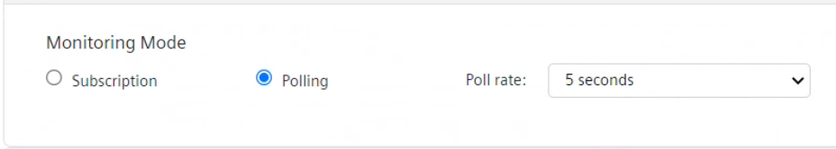 You must perform the following procedure only if the OPC UA server in use does not support the subscription to points. It allows setting the polling rate for the OPC UA client to periodically read the points values.