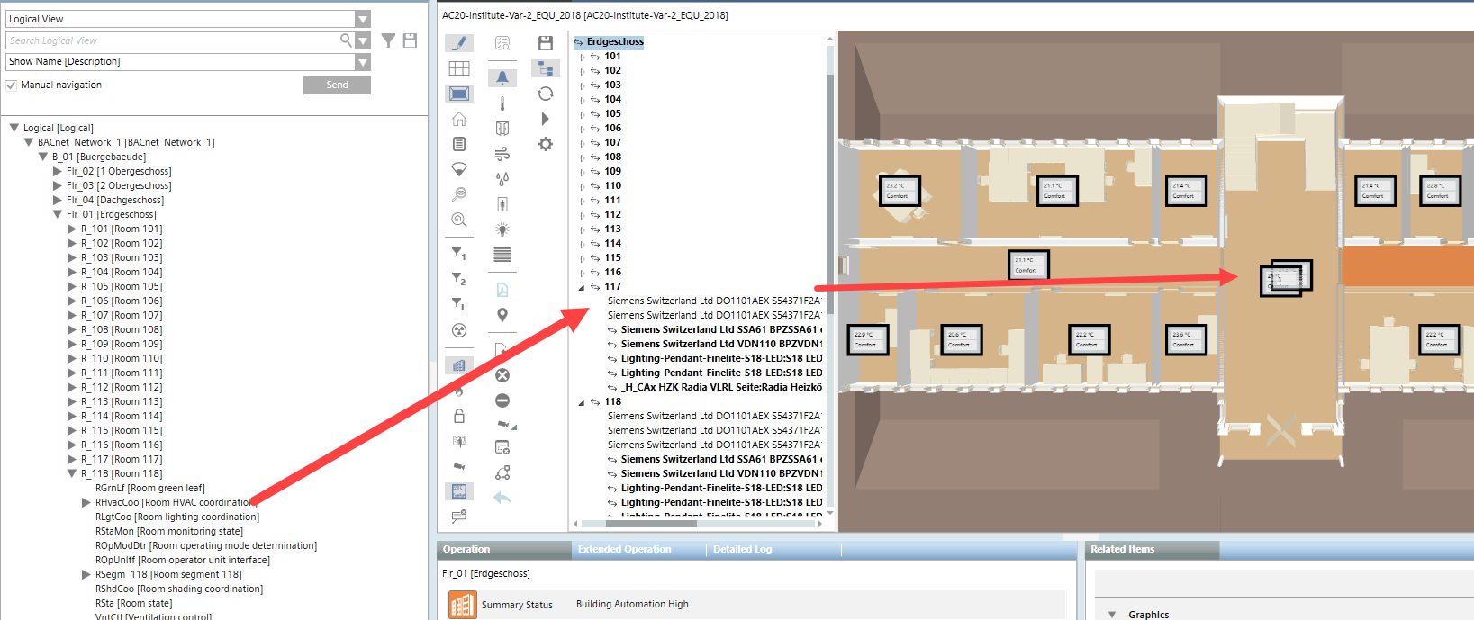 - Select Logical > [Subsystem name] > [Building name] > [Floor] > [Room] > > [Room 118] > {RHavcCoo} HVAC room coordination.